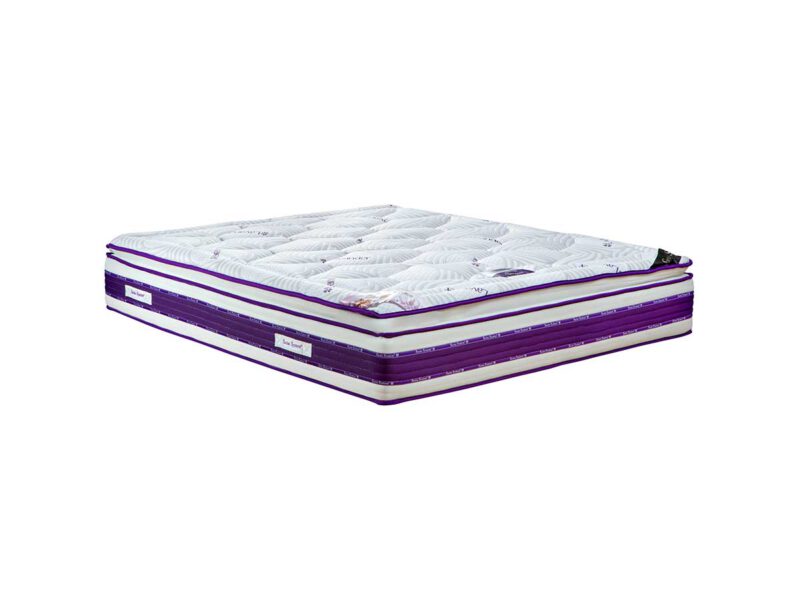 מזרון זוגי PILLOW TOP ללא צורך להפוך (NO FLIP) בעל ליבת פולימר מוקצף בשילוב שמן הלבנדר, כולל שכבות לטקס טבעי, בד ויסקוזה בשילוב קפסולות לבנדר. גובה המזרן 32-33 ס”מ.