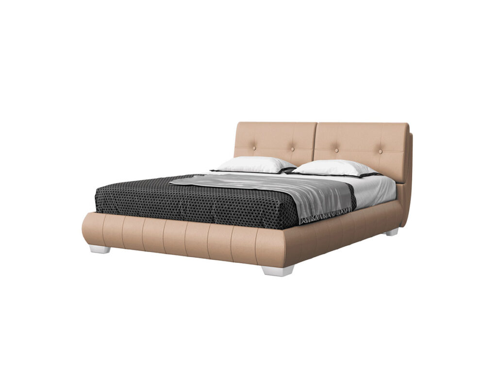 מיטה זוגית דגם דניש מאופיינת במראה נקי, זוג כריות בגימור כפתורי טפטינג, המיטה עוצבה על ידי Matthias Rossow מעצב הבית של “רופ ביטן גרמניה”.