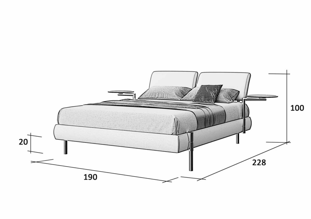 המיטה מאופיינת במראה אולטרה מודרני, קווים נקיים, יש אפשרות כוונון של כריות הראש. בנוסף, האפשרות להרכבת הרגליים בחזית המיטה או בצדי המיטה מעניקים למיטה זו אפשרויות עיצוב מגוונות.