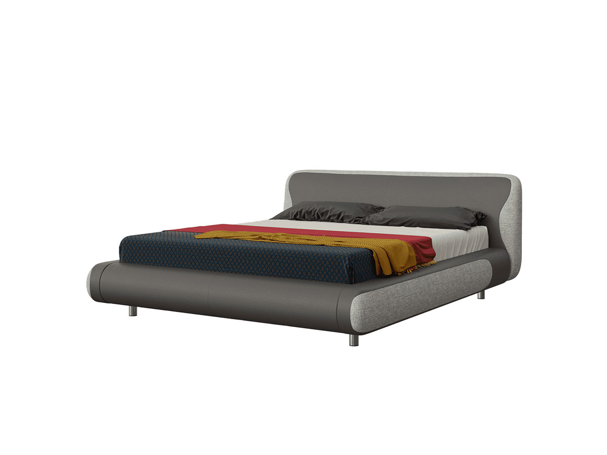 המיטה מגיעה בגימור של עור ובד בראש המיטה ודמוי עור עם בד תואם במסגרת המיטה.