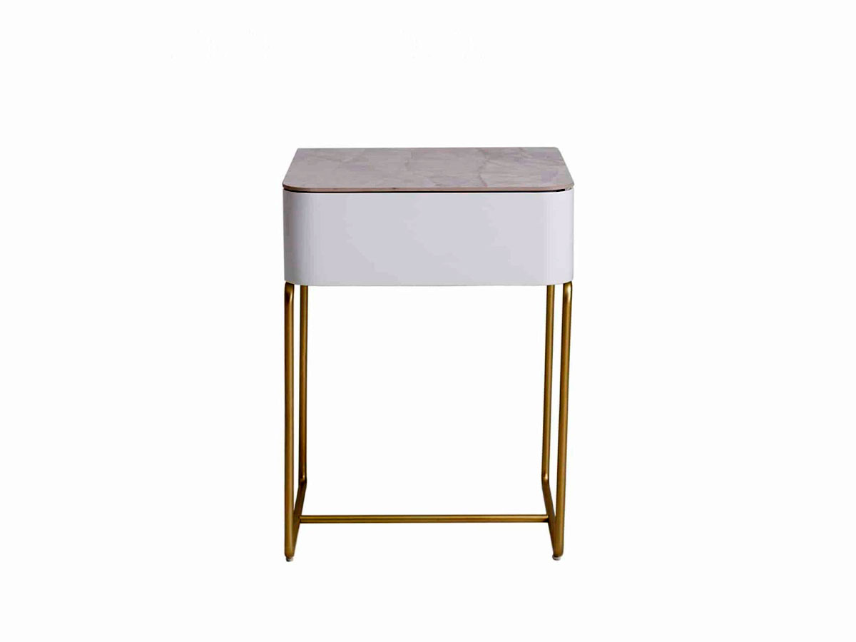 הפלטה עליונה של השידה עשויה מחומר דמוי שייש ולכן אין שתי שידות זהות בנראות אחת לשנייה